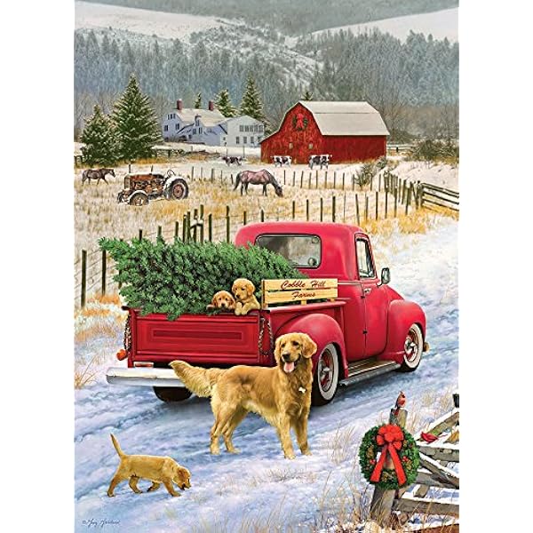 Cobble Hill 1000 Piece Puzzle Christmas On The Farm With Poster Included Jigsaw Puzzles Amazon Canada